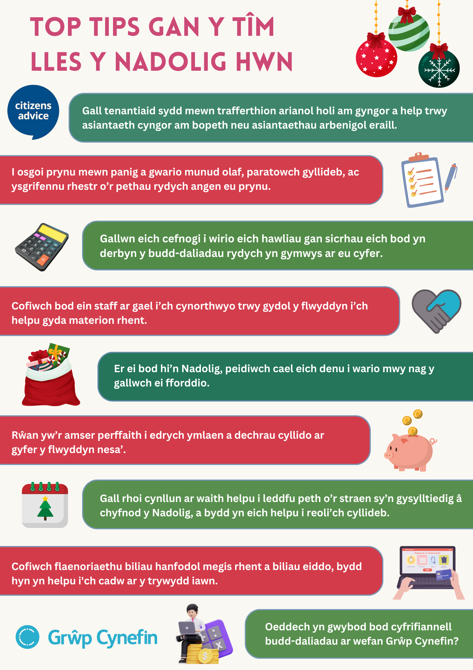 Top Tips i'ch helpu arbed ynni ac arian y Nadolig yma
