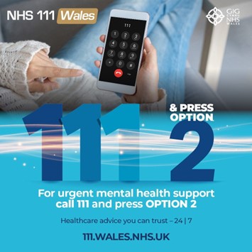 Oeddech chi’n gwybod bod llinell ffôn genedlaethol wedi cael ei lansio ledled Cymru ar gyfer pobl sydd angen cefnogaeth iechyd meddwl brys. Am gefnogaeth iechyd meddwl brys, ffoniwch 111 a dewiswch OPSIWN 2. Gallwch gael cyngor a chefnogaeth gan weithiwr iechyd meddwl proffesiynol yn eich ardal 24 awr y dydd, 7 dydd yr wythnos. Am fwy o wybodaeth, cliciwch yma.